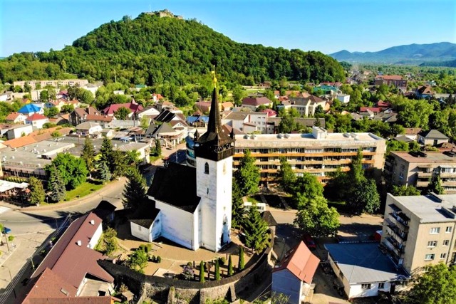 Суворий готичний колишній костел Святої Єлизавети розташований у самому центрі Хуста.