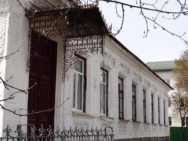 Будинок одноповерховий, фасад декорований ліпниною. Збереглися різьблені двері, фігурний кований навіс над входом, ковані огорожі.