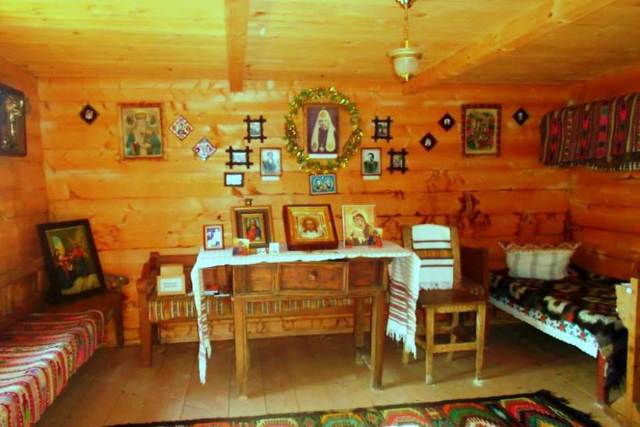 В першій кімнаті відтворено інтер'єр помешкання сім'ї Романюків, представлено родинні речі: стіл, ліжко, канапи, колиска, скриня, мисник із керамамічним посудом, вироби з дерева, традиційний одяг, ікони.