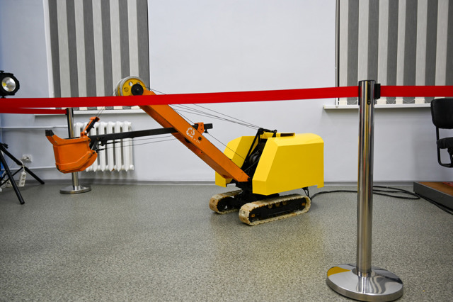 В музеї представлено макет будівлі університету, моделі гірничодобувної техніки та нафтодобувного обладнання.