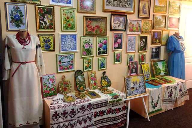 Експонуються вироби місцевих народних умільців: живопис, вишивка, вироби лозоплетіння тощо.