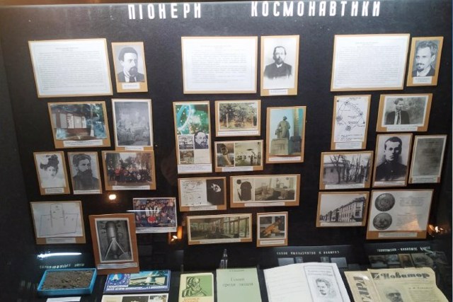 Експозиція музею має 11 тематичних розділів – "Початок ери космосу", "Піонери космонавтики", "Творці космічної техніки. Україна" (в якому зокрема представлено макети РН "Зеніт-38Т" та матеріали про ракетно-космічну техніку створену конструкторським бюро "Південне"), "Служили в Охтирському полку", "Перший землянин-космонавт", "Перший космонавт України" (присвячений Леонідові Каденюку), "Подвиг Берегового", "Меню космонавтів", "Космічне спорядження космонавтів", "Історія авіації України", а також багато інших експонатів, які розповідають про роль і міс ...
