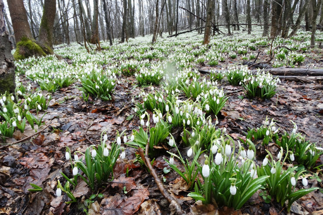 Найбільший масив підсніжника складчастого в Холодному Яру зростає на території ботанічного заказника "Білосніжного" за 1,5 кілометри на північний схід від Мотронинського монастиря. Ця поляна підсніжників особливо популярна серед туристів під час цвітіння первоцвітів протягом березня та на початку квітня.