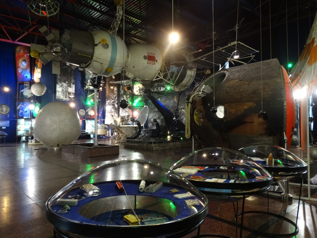Навпроти розташований павільйон "Космос", відкритий у 1991 році. В експозиції представлені оригінали та макети космічних апаратів, скафандри та інше спорядження космонавтів. Серед них - технологічний зразок космічного корабля "Союз", макет "Лунохода-2", оригінал спускового апарату корабля "Союз-27", що побував у космосі. Одним із найцінніших експонатів є капсула з ґрунтом Місяця, подарована NASA.