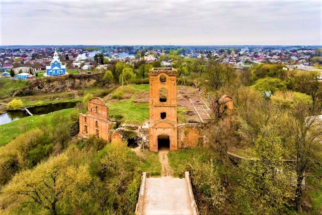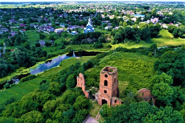 Руїни Корецького замку з виразною надбрамною баштою червоної цеглини є візитівкою міста.