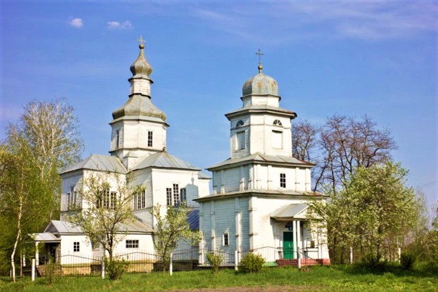 Збереглася велика дерев'яна Успенська церква в стилі бароко, збудована в 1765 році.