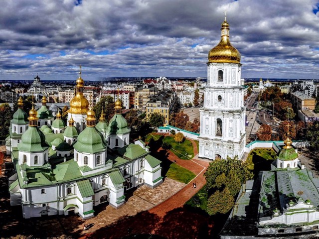 Прекрасний 19-купольний собор Святої Софії в Києві - найдавніша архітектурна пам'ятка Русі, один з найбільших християнських храмів свого часу, об'єкт світової культурної спадщини ЮНЕСКО.
