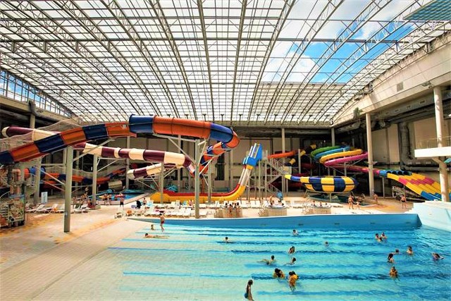 Аквапарк "Термінал" в Броварах - єдиний в Україні аквапарк із розсувною прозорою покрівлею, яка дає можливість приймати сонячні ванни в теплу пору року.