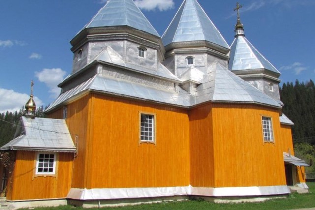 Є типовим буковинським триярусним храмом. Дерев'яна церква має прямокутний у плані притвор, квадратний неф і гранований вівтар, перекриті трьома майже однаковими верхами, середній з яких трохи вищий і стрункіший за інші. До нефа з обох боків прибудовані притвори гранованої форми, що надає храму майже хрестоподібного вигляду.