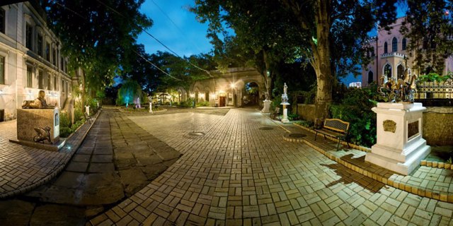 У музейному дворику знаходиться сад скульптур із клумбами, фонтаном, середньовічними статуями та сучасними жартівливими бронзовими мініатюрними пам'ятниками на честь героїв одеського фольклору: Вічному єврею Рабиновичу, Прийдешньому генію, Михайлу Жванецькому, Джинсовому Дюку, Кості-моряку тощо.