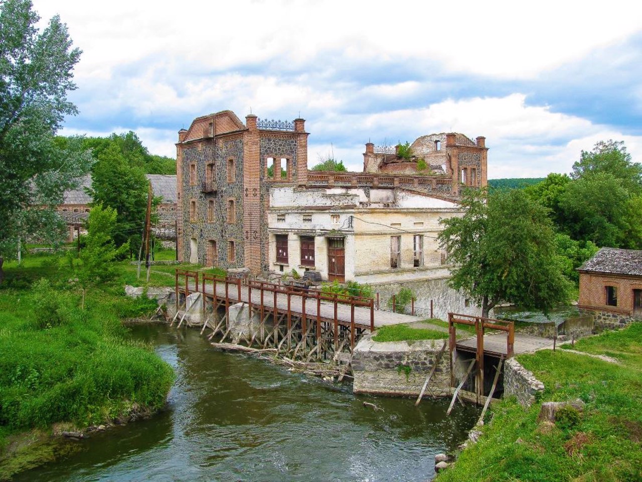 Витончений чотириповерховий промисловий будинок збудований німецькими майстрами за проєктом архітектора Яна Гойріха в кінці ХІХ століття, коли цими землями володів граф Костянтин Потоцький. Стіни виконані з бутового каменю та червоної цегли, зберігся металевий декор та частина старовинного обладнання. Поруч знаходиться кам'яна будівля складу, а на протилежному березі каналу - крупорушка.