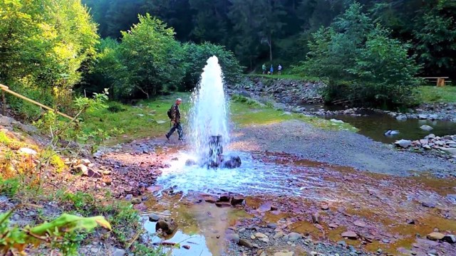 На березі гірського потоку знаходиться гейзер мінеральної води, який в певний час вихлюпується струменем до 5 метрів у висоту.