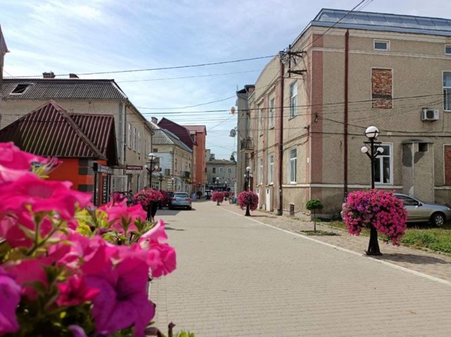 Здалеку видно вежу пізньоготичного Миколаївського костелу (1538-1666 роки) на центральній площі, де встановлено пам'ятник Роксолані.