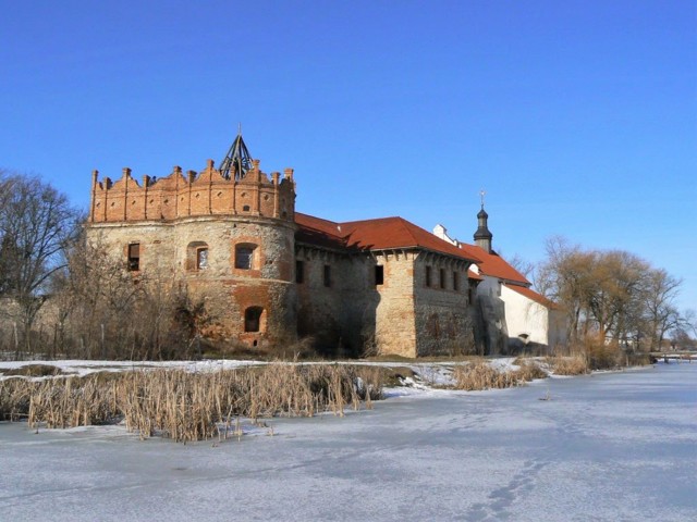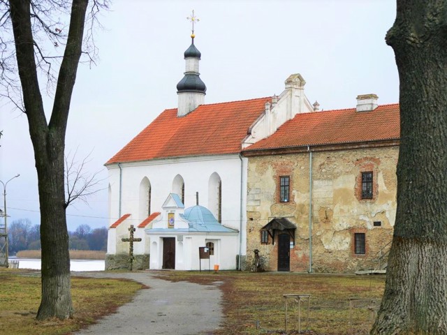Замкова церква Святої Трійці, яка виконувала оборонні функції, відреставрована (належить Православній церкві України). Всередині збереглася частина фресок XVI століття, зокрема первісний герб князя Василя-Костянтина Острозького: восьмикінцева зірка, охоплена знизу півмісяцем.