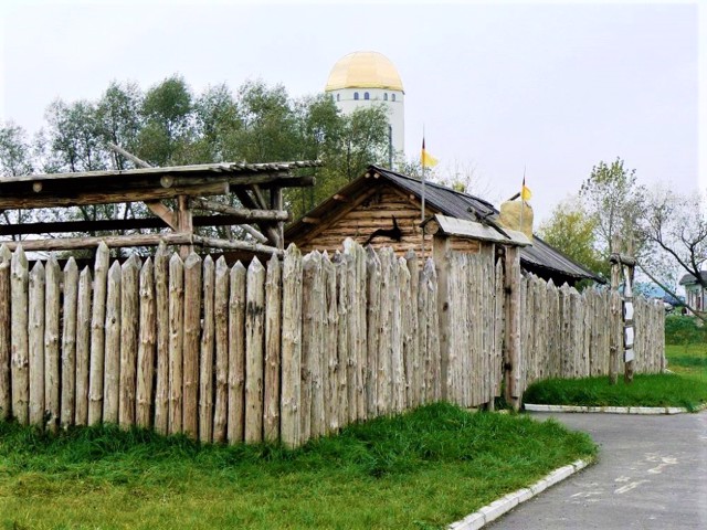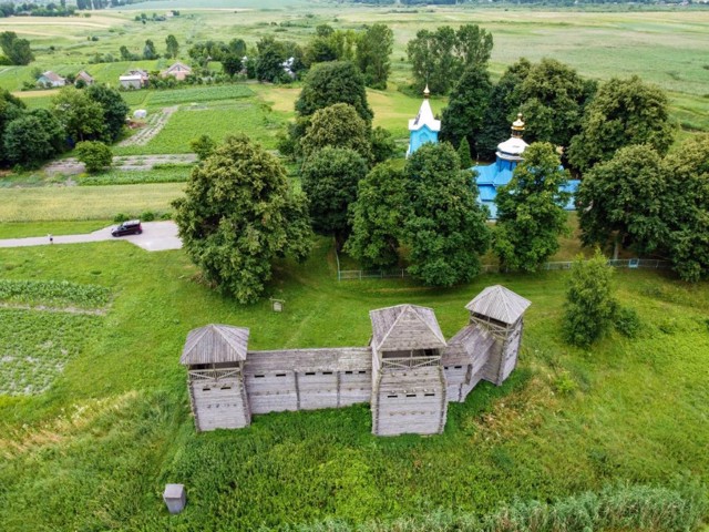 Поряд із храмом знаходиться реконструкція фрагменту дитинця Пересопницького городища XII-XIII сторічь - дерев'яна стіна з трьома вежами.