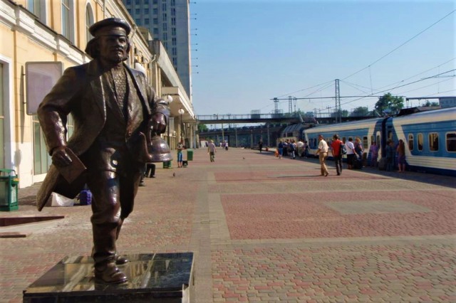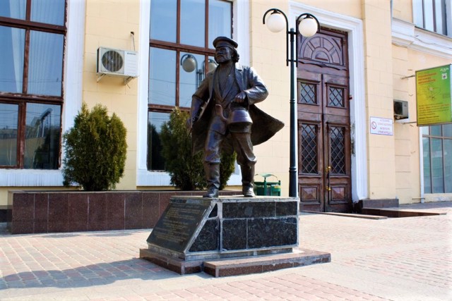 Пам'ятник отцю Федору, персонажу роману "Дванадцять стільців" (1928 рік) Іллі Ільфа та Євгена Петрова, встановлено на 1-й платформі Південного залізничного вокзалу в Харкові.