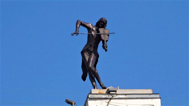 Скульптура "Скрипаль на даху" була встановлена на будівлі консерваторії Харкова - пам'ятці архітектури ХІХ століття.