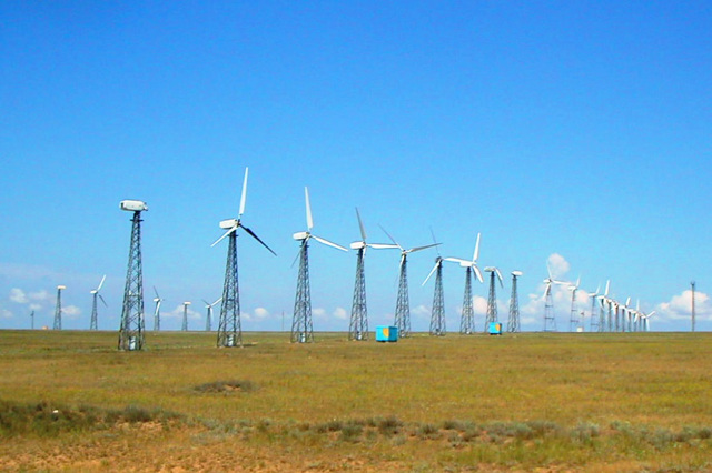 На великій площі посеред кримського степу розташований геометричний ліс високих щогл з пропелерами електрогенераторів.