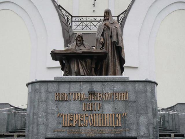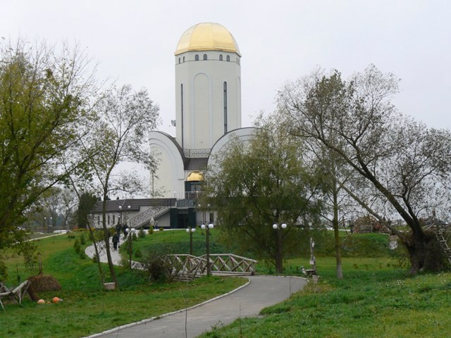 Культурно-археологічний комплекс "Пересопниця" - трирівневий конструктивістський будинок, що нагадує храм.