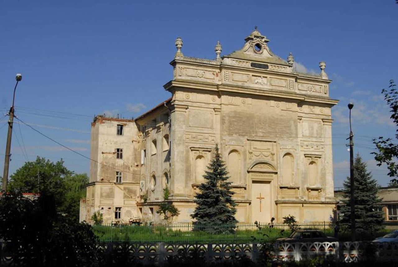 Новий мурований католицький храм за проєктом Доменіко Мерліні мав 7 вівтарів. Фасад його раніше прикрашав портик із колонами. На фризі зберігся рельєф "Алегорія віри".