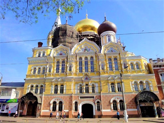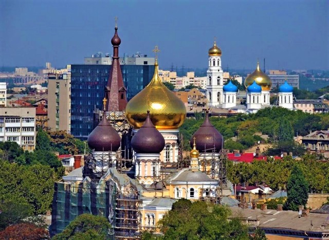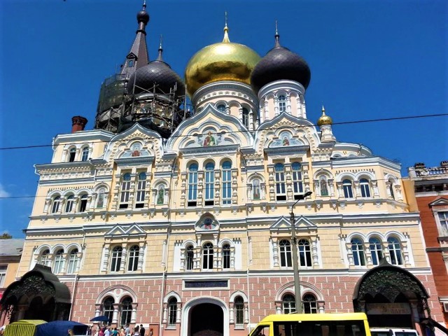 Збудований з каменю, видобутого на Святій Афонській горі і привезеного до Одеси. П'ять куполів Свято-Пантелеймонівського монастиря, незвичайні ліплення та мозаїка на стінах відображають суміш різних архітектурних течій XIX століття.