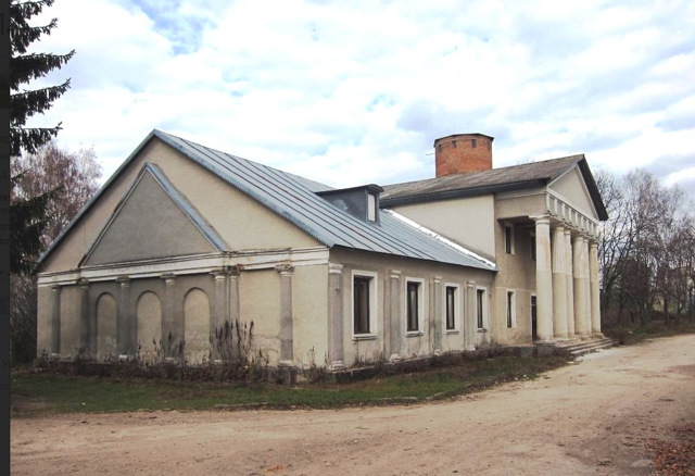 Старий одноповерховий палац збудував в кінці XVIII сторіччя граф Юзеф Каласантій Левицький. Це досить скромна будівля в стилі класицизму із шестиколонними портиками на парадному та парковому фасадах.