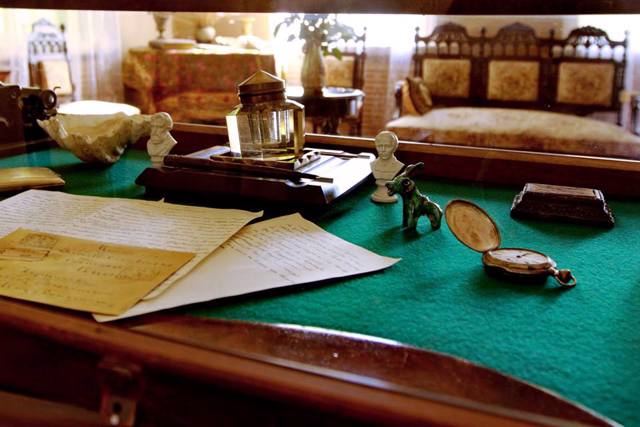В будинку письменника відтворено обстановку, яка була за життя Михайла Коцюбинського, зокрема робочий стіл з письмовим пр ...