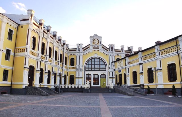 Будівля Козятинського вокзалу у вигляді білого пароплава розташована островом, який з обох боків "омивають" рейкові колії.
