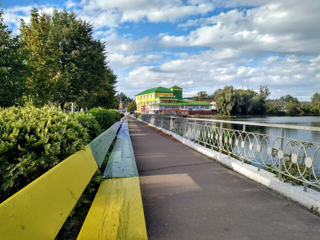 Лавка на набережній ставка на річці Утка в Славуті, вздовж Третьої дамби, з 2012 року має титул найдовшої лавочки України.