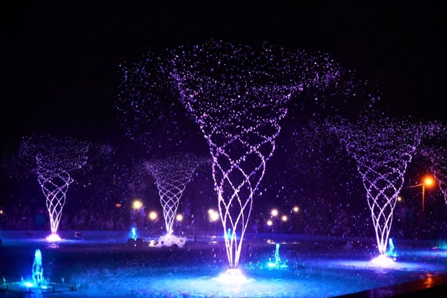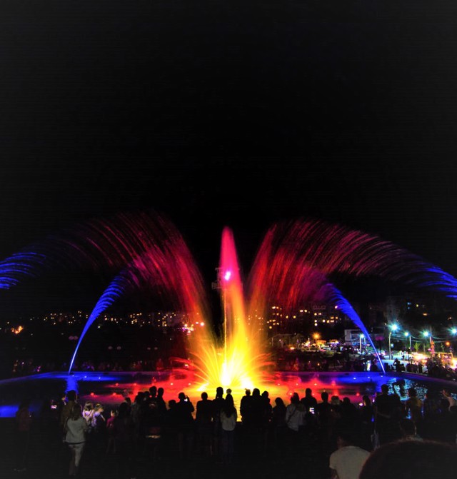 | Години роботи | В світломузичному режимі фонтани працюють у будні з 18:00 до 20:30 та у вихідні з 17:00 до 19:00. З п'ятниці по неділю о 19:30 проходить світломузичне шоу на водяному екрані. |