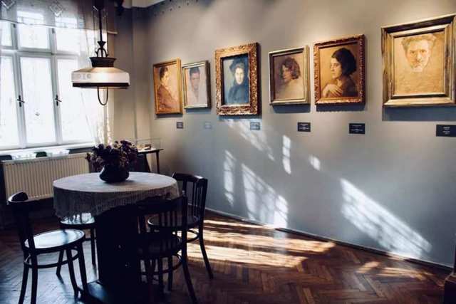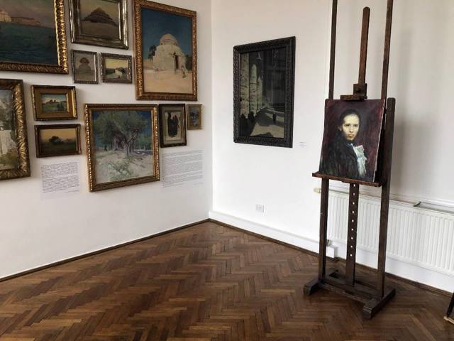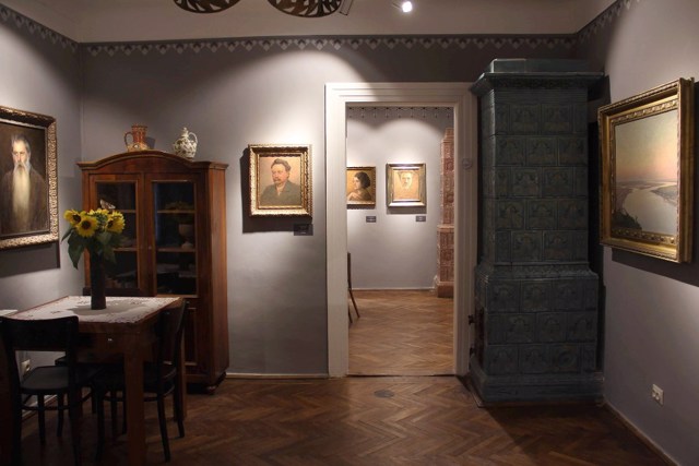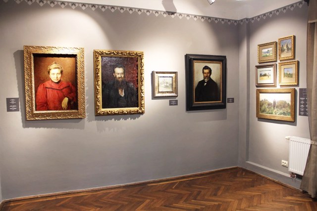 Представлені портрети видатних українських діячів, полотна з видами Львова та Києва, краєвиди Криму та Карпат, італійські та єгипетські пейзажі, а також родинні світлини та меморіальні речі.
