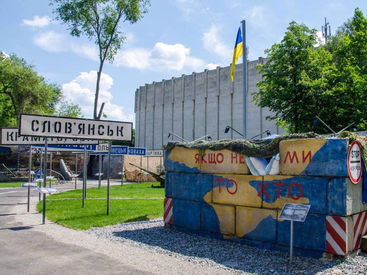 На вуличній експозиції "Шляхами Донбасу" просто неба виставлено понад 400 експонатів, що є символами війни: типовий залізобетонний блокпост, зенітна установка ЗУ-23-2, карета швидкої допомоги, бойова машина піхоти БМП-2, башта танка Т-64, військовий позашляховик, дорожні знаки міст Донбасу, скульптурна композиція "Солдат і дівчинка".