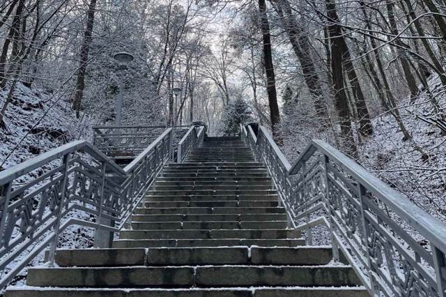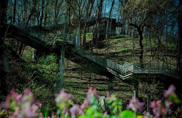 Від причалу та автостоянки біля підніжжя Чернечої гори на її вершину ведуть гранітні сходи, що нараховують 392 сходинки, з майданчиками для відпочинку та фонтаном "Лілея" (1977 рік, архітектор Анатолій Мошенський).