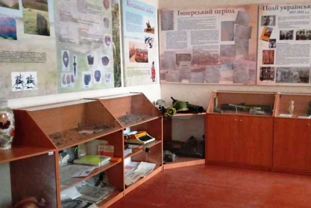 В експозиції представлені археологічні знахідки різних епох, зокрема козацької доби, фрагменти зброї та спорядження часів Другої світовової війни, матеріали про видатних земляків, колекції монет і банкнот різних часів.