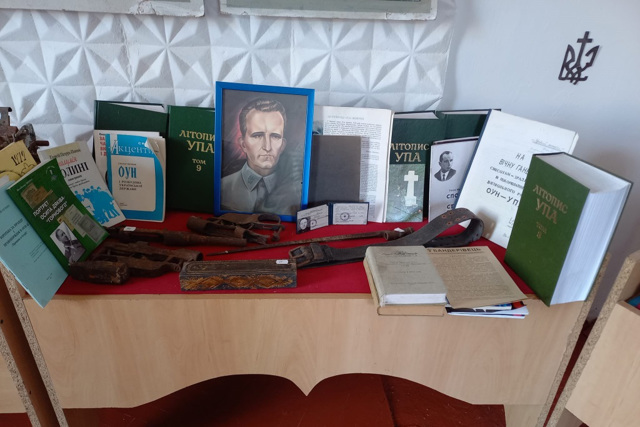 Експозиція музею представлена у трьох тематичних відділах. Перша зала присвячена археології краю та історії визвольної боротьби на Підгаєччині. В ній експонуються збірка споминів колишніх вояків Української Повстанської Армії "В рядах УПА", хроніка "Незабутні літо та осінь повстання незалежності 1991 року", матеріали "Відзначення 60-ліття". Велику цінність представляє і переклад з російської публіцистичного твору Івана Біласа "Репресивно-каральна система в Україні у 1917-1953 роках", написана на основі досліджень архівних матеріалів, в яких розкривається підступна технологія поборювання національно-визвольного руху ОУН-УПА, яку практикували органи НКВС.