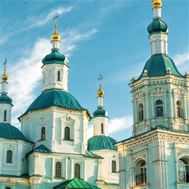 Собор побудований на межі XVII-XVIII століть коштом засновника міста Герасима Кондратьєва та його сина Андрія Кондратьєва. За легендою, при будівництві в стіну храму було замуровано сестру Кондратьєва - Марію, отаманшу розбійницької зграї.
