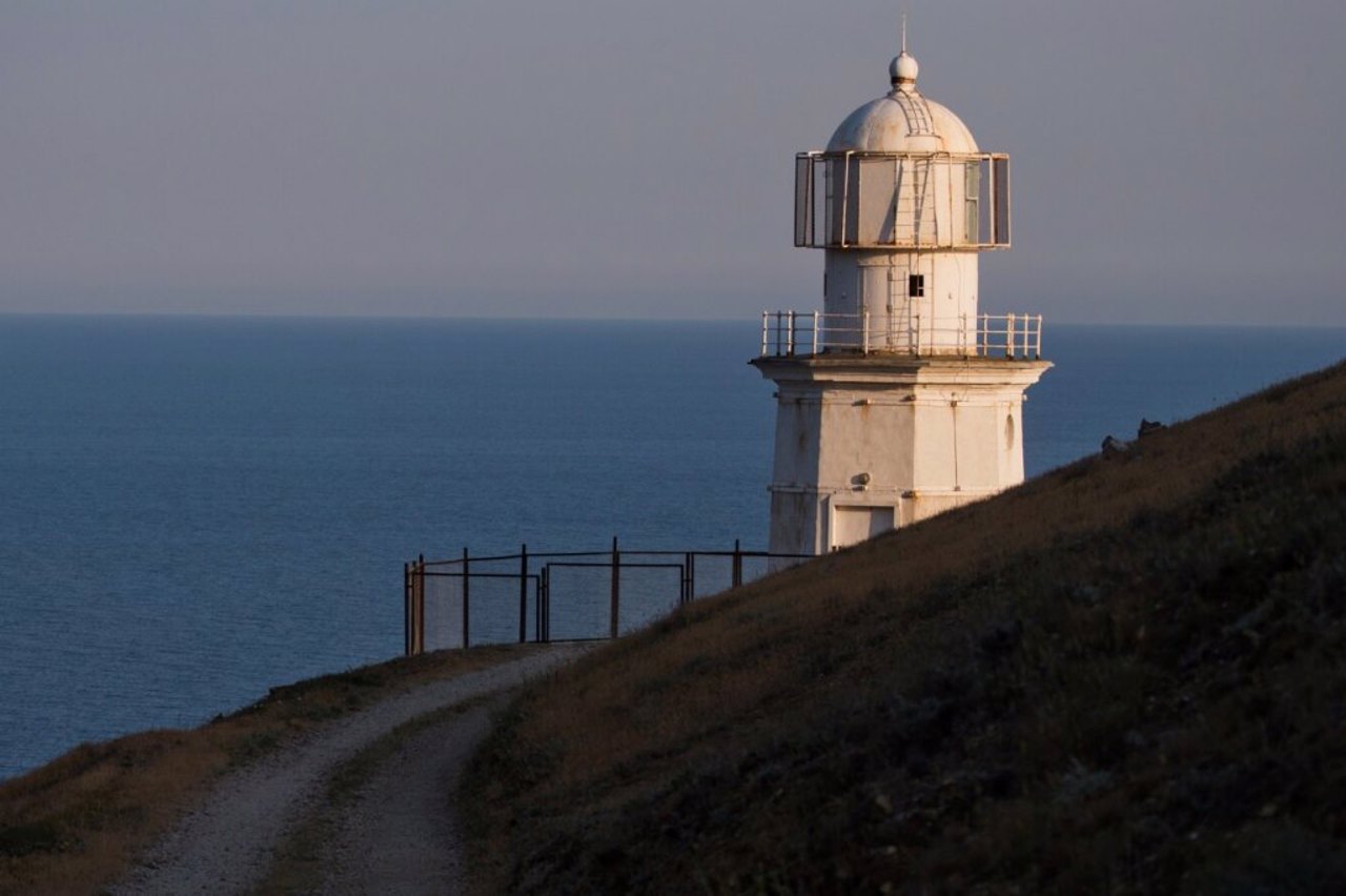 Маяк (початок XX століття) видно з Нового Світу. Сучасне буддистське святилище споруджено просто неба в 1992 році.