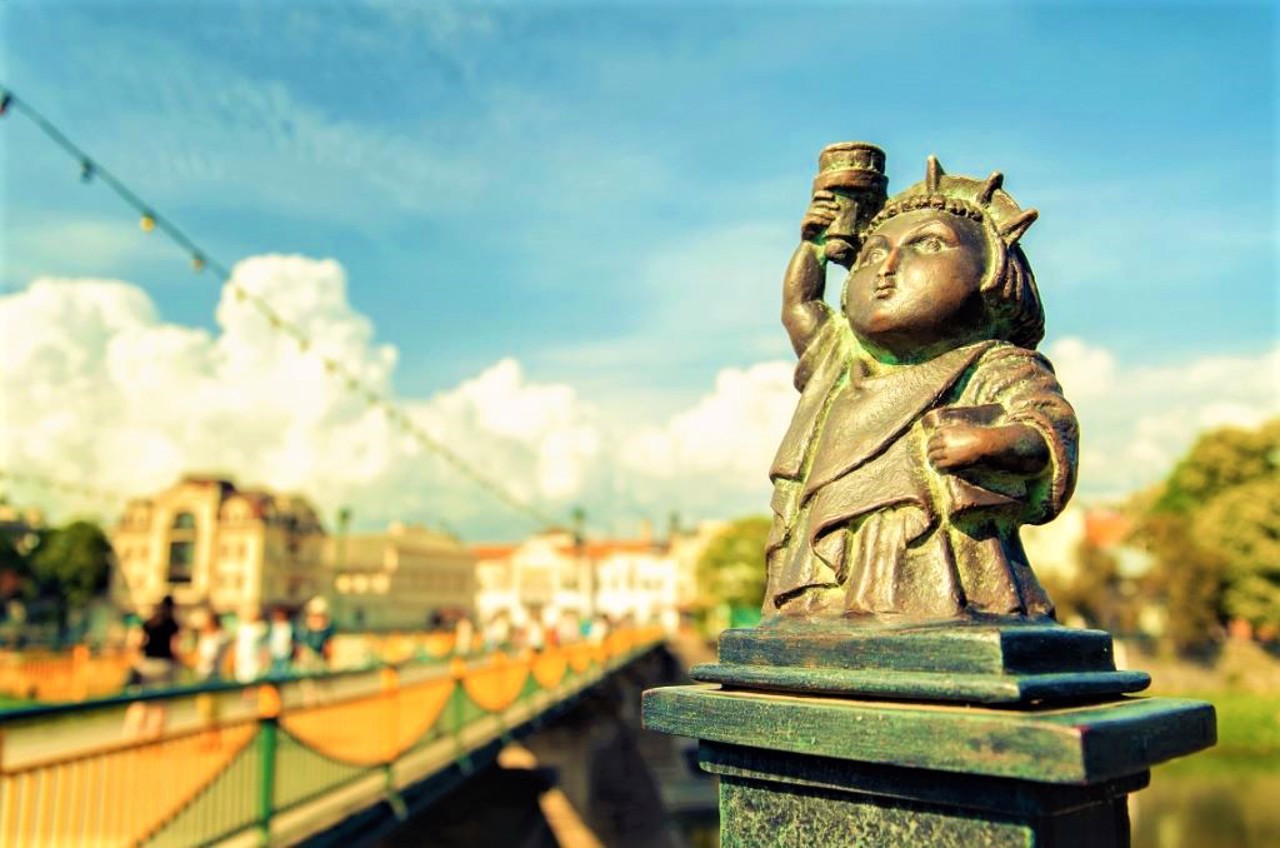 Міні-статуя Свободи в Ужгороді, яка є одночасно найменшим чинним маяком в Україні, виготовлена скульптором Михайлом Колодком у стилі Фернандо Ботеро та встановлена в 2011 році на честь Ужгородської річкової регати.