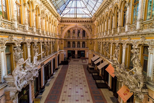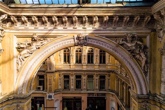 Готель "Пасаж" на Дерибасівській в Одесі - одна з найкрасивіших будівель міста, яка вражає вишуканістю архітектури та скульптурних композицій (архітектор Лев Влодек).