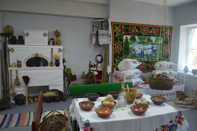 Відтворено інтер'єр української хати XIX століття, де можна побачити давній сільськогосподарський та хатній реманент, вишивку, кераміку, вироби із лози та з дерева. В куточку побутових речей середини ХХ століття експонуються старі радіоприймачі, програвачі та друкарська машинка.