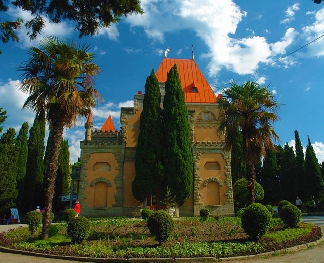 Карасанський парк закладений в 30-ті роки XIX століття Миколою Раєвським-молодшим, другом Олександра Пушкіна. В 1887 році збудований будинок Раєвських "Карасан" в мавританському стилі. У 1907 році споруджений палац княжни Анастасії Гагаріної, стилізований під середньовічний альпійський замок.
