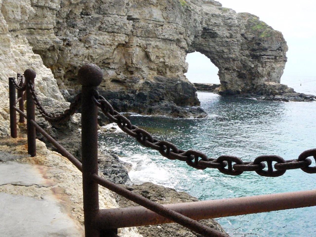 Мис Малий Атлеш пронизує наскрізний тунель завдовжки майже 100 метрів. Ентузіасти створили тут підводний музей радянської скульптури "Алея вождів".