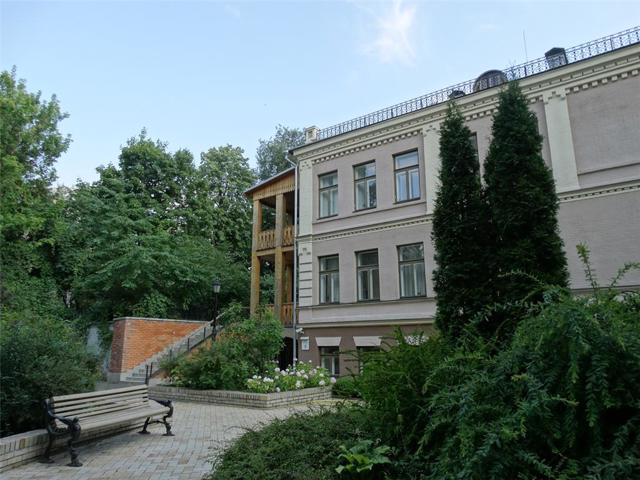 Музей розташований в закритому дворі (вхід через арку), оточений садком, який був окрасою садиби ще за Грушевських.