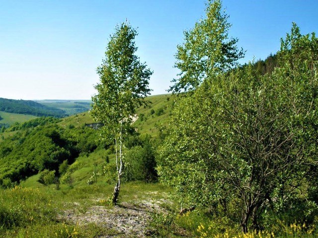 The Marusyn Stone (Marusyn kamin) tract is located on the top of a hill near the villages of Hamarnia and Velikiy Oleksandriv on the left bank of the Ushytsia River.