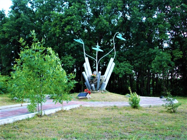 The original project of the monument with models of three planes (SB, I-16, I-153) was developed by the architect Viktor Melnychuk. Around the monument there are 10 plaques with the names of the fallen pilots.