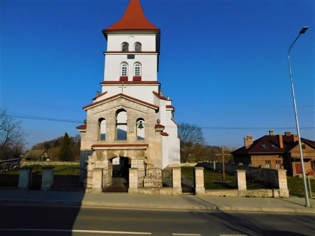The temple is rectangular in plan, single-nave, with a three-tiered tower under a tent on the western facade. The entrance to the church is decorated with a finely crafted portal. Once there were two loopholes above the choirs, which testified to the defensive nature of the building. Opposite the main entrance is a two-story bell tower.