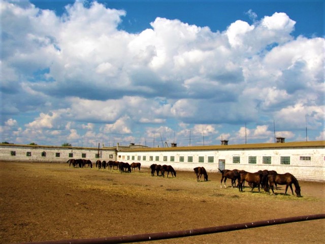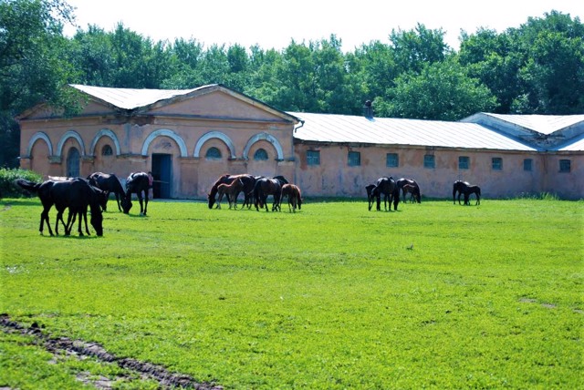 It was mentioned for the first time in 1765 in connection with the foundation of the Derkul stud farm, for which, by decree of Empress Catherine, the lands of Bilovodsk, Yevsuh and Markivka slobids were allocated, and a "convenient place near Danyliv farm" was chosen for the stable yard. The factory received the first breeding horses in 1767. During the Second World War, many of the factory's buildings were destroyed. The coaching stable, the "Japanese" manege (a plaque with the date of construction - 1897 has been preserved) and the office have survived.