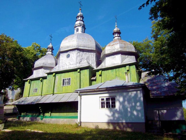 The temple on one of the village hills was built in 1873 (according to other sources - in 1803). It was transported to Zhukiv from Naraiv, where it was originally built. The inscriptions "Zhukiv 1928" and "Shumlyany 1928" are embossed on the tin on the domes above the nativity scene and the altar. It is possible that it was in 1928 that the tin covering of the temple was installed and the inscriptions were made.