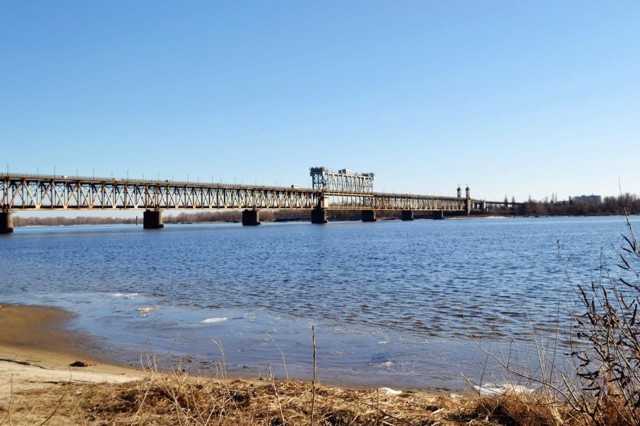 The city of Kremenchuk is located on both banks of the Dnipro connected by a two-story road and railway bridge (1872-1949).