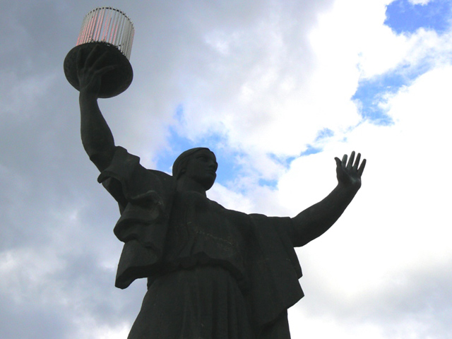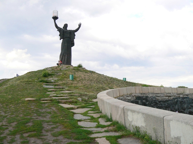 The memorial complex with the monument "Motherland" in Cherkasy is located on the territory of an ancient castle, on the site of the Holy Trinity Church, which was destroyed during the Soviet regime.